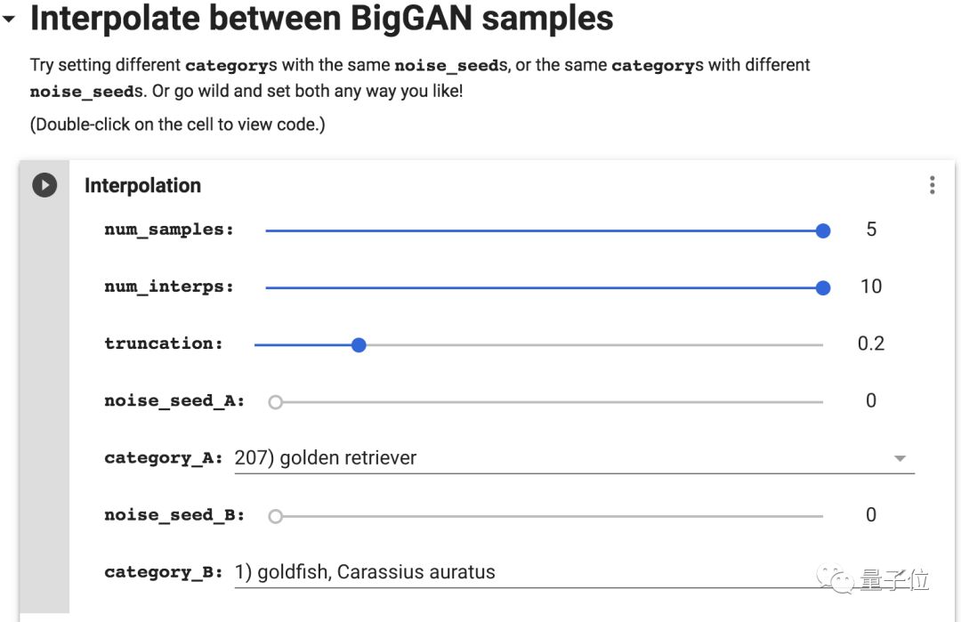 这意味着,不用花10-70万元的费用租TPU亲手训练,只要打开DeepMind放出的地址,就可以体验到亲手支配BigGAN的感觉。