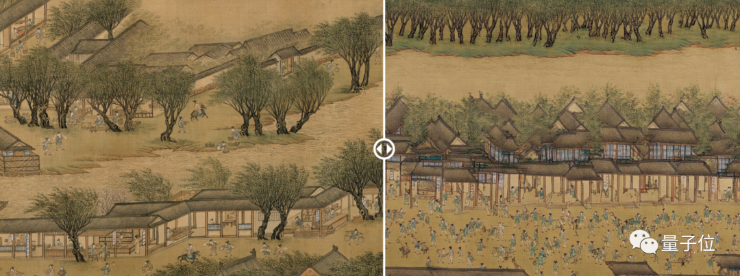 无论是房屋树木,还是市集中熙熙攘攘的人群,AI的笔法都抓到了原作的风格神韵,拼在一起乍一看还真认不出来。