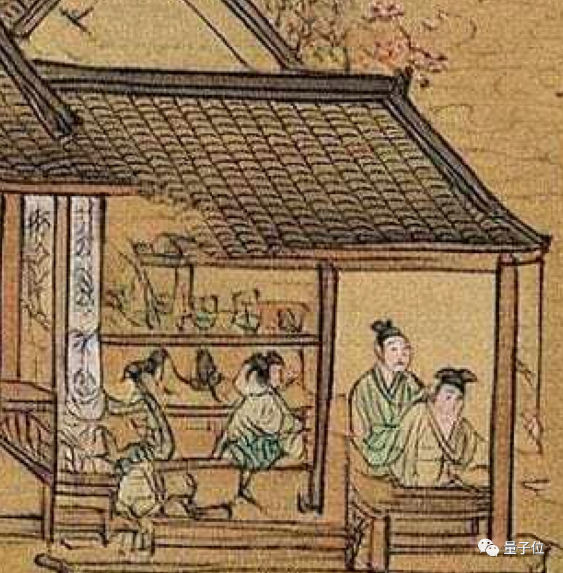 喏,店铺里的小人在干啥看得一清二楚,体态和衣着也各不相同。