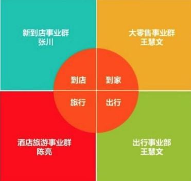 从美团的组织架构,我们可以猜测其野望(野心和奢望)在哪。美团的业务聚焦在“到店、到家、旅行、出行”四大LBS场景,前台架构也是以四种业务成立的四大事业群。美团是想要在“围绕人的生活服务领域”成为老大,争夺BAT之后的“次级流量入口”,同样,这也是滴滴的目标。