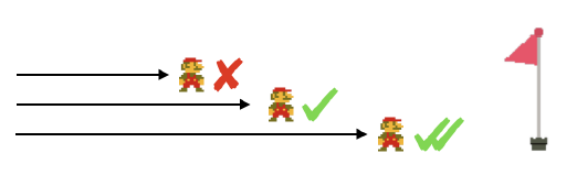 「马里奥」有一个目标:到达最后的关卡。简单来说,就是你在死之前到达的地方越远,你就玩得越棒。这是你唯一的目标函数,并且你的模型能力可以直接用这一数值来评估。