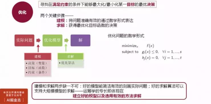 运筹优化有两大重要的工具,第一是所谓的优化工具,我们说运筹优化,自然的优化本身是最核心的内容。优化问题有三个组成部分。