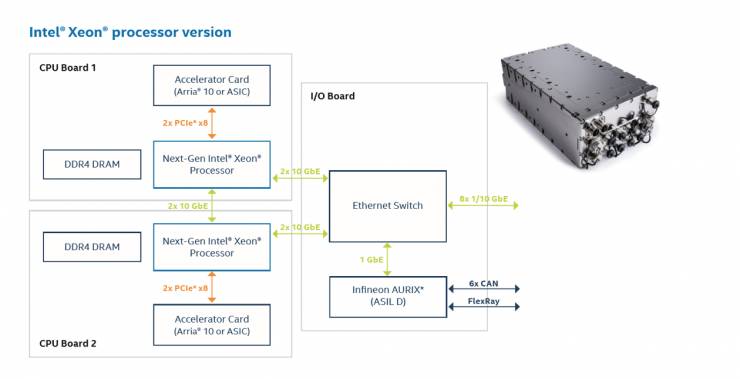 以英特尔的 Go 最为典型(如上图),Waymo 用 FCA 改造的无人车很有可能使用了类似的运算平台。