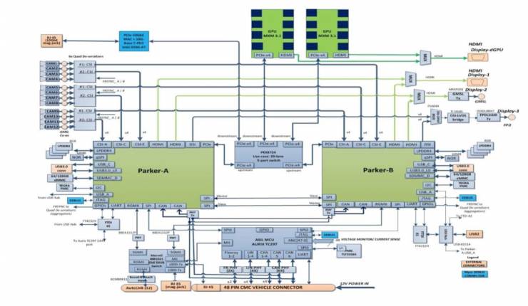 再加一片安全控制 MCU,通常是英飞凌的 Aurix 系列 MCU,使整体系统达到 ASIL D 级安全等级。即便是这样的系统,其功耗最少也在 500 瓦以上。