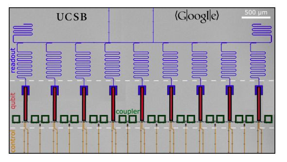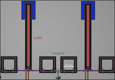图:Charles Neill和Pedram Roushan开发的两个gmon的超导量子比特及其可调耦合器