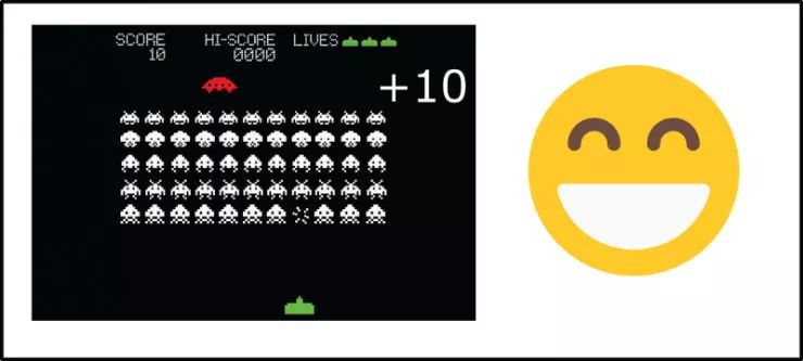 例如,如果你玩太空侵略者,你射击并杀死一个敌人,你会获得奖励。因此,你会明白在那个场景下的这个行动是好的。