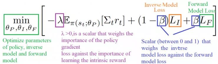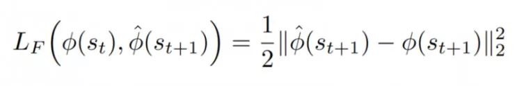 我们知道可以将好奇心定义为给定当前状态st和行动at的预测新状态(st + 1)与真实新状态之间的误差。