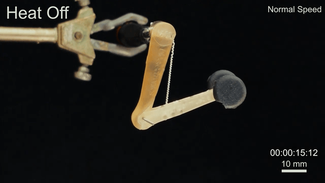 根据这一观察,他发现,即使温度只是稍稍升高,纤维也会收紧,产生惊人的强大拉力。然后,一旦温度下降,纤维就恢复到原来的长度。