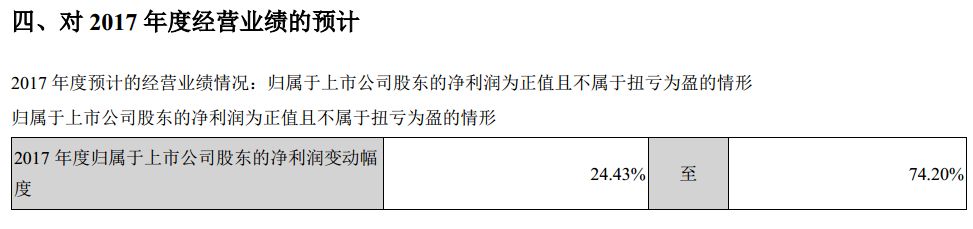 在2017年三季度报告中,也给全年业绩做出了相当乐观的预计,让市场大为兴奋。