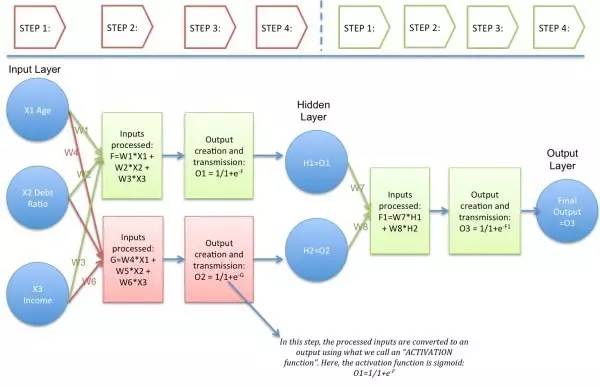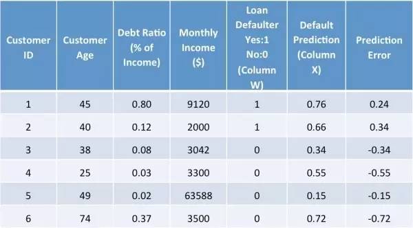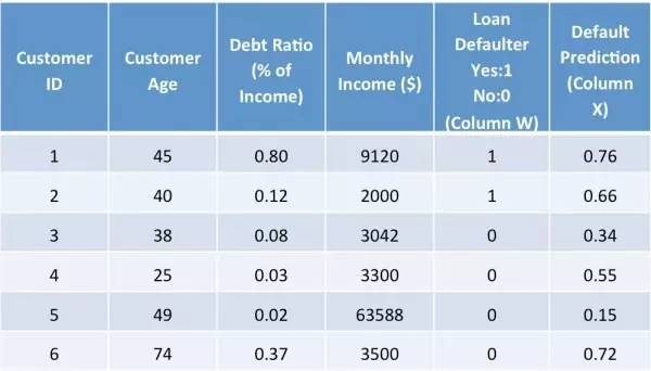 为了使事情变得简单明了,让我们可以用一个简单的示例来帮助理解ANN:一家银行想评估是否批准一个客户的贷款申请,所以,它想要预测这个客户是否可能违约贷款。现在,它有如下数据: