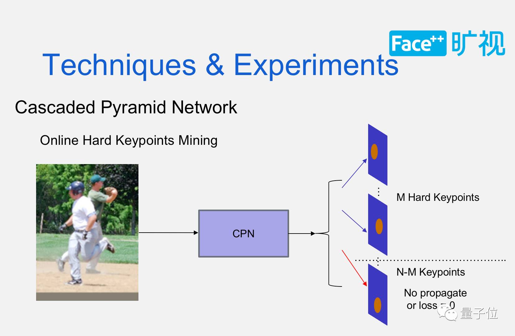 从人看关节点的过程获得启发,然后将这一启发运用到卷积神经网络里,先解决简单部分再解决难的部分。这是一个两阶段网络:全局网络和精炼网络。全局网络,主要是解好一些容易点;精炼网络,主要是定向解决更难的一些点。具体的实施方法用到了在线难关节点挖掘的算法。