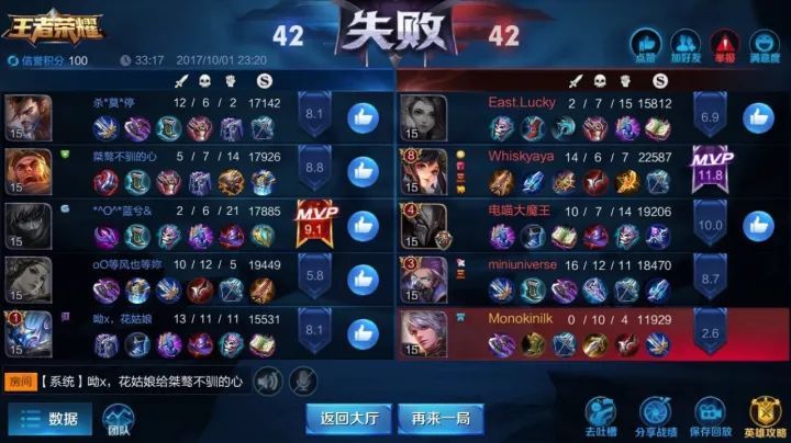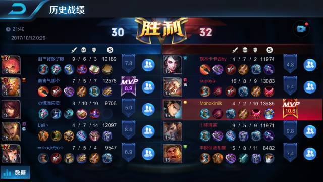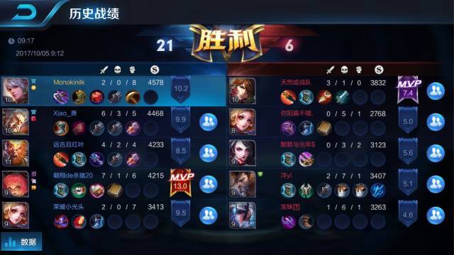 作为一个菜鸡,总是想着怎么样能上MVP,于是在十一第一天我在匹配的时候第一次玩了感觉上去很厉害的英雄“百里守约”。然而连续三次都被K.O.到爆,全局得分最低的就是我,噗...不忍直视。