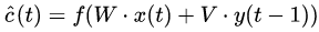 当然要先定义一下新信息是什么。不妨直接拿来simple RNN中对新信息的定义,即当前时刻的外部输入x(t)与前一时刻的网络输出(即反馈单元)y(t-1)联合得到网络在当前这一时刻get到的新信息,记为。即: