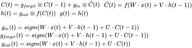 当然,这个让各个门考虑长时记忆的做法是后人打的补丁,这些从长时记忆单元到门单元的连接被称为"peephole(猫眼)"。