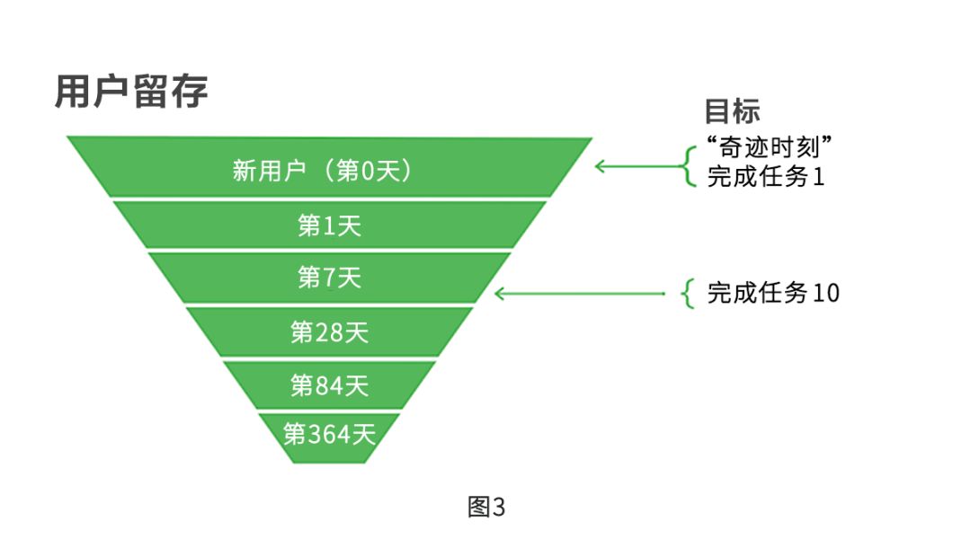 图3显示了用户完成注册,成为激活用户或“新”用户后,用户留存漏斗模型中的各个用户组。