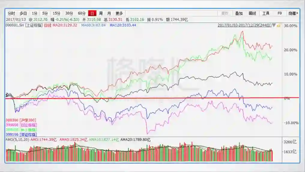 2017年12月,证监会发布了2017年行政处罚情况综述,全年作出行政处罚决定224件,罚没款金额74.79亿元,同比增长74.74%,市场禁入44人,同比增长18.91%,行政处罚决定数量、罚没款金额、市场禁入人数再创历史新高。现在的A股,不需要徐翔,需要是价值股,需要的是慢牛,穿透到人的监管体系,想要啥,就有啥,随之而来的是2017年以沪深300为首的稳稳的幸福与创业板的一路向北。
