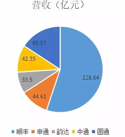 截至目前,阿里已完成对圆通、中通、申通、百世等四家快递公司的战略投资。以2018年三季度公布的营收数据计算,圆通、中通、申通同时也是中国在A股上市的民营快递业第二至第四位的企业,如若加上美股上市的百世(三季度营收71.89亿元人民币),四家快递公司营收合计224.42亿,与顺丰228.64亿元不相上下。