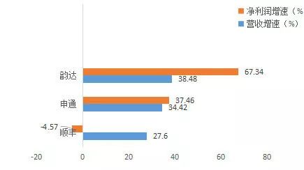 而在利润方面,顺丰由于负增长,相对同行业更为难看。