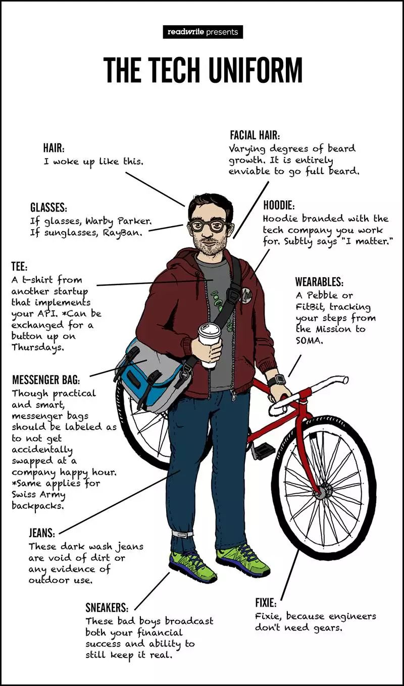 不过,程序员群体遭到戏谑的原因实在也不难理解。其中最重要的因素,就是他们与自身收入和社会地位完全不匹配的服饰装扮。