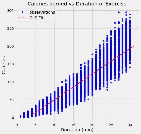 calories = -21.83 + 7.17 * duration