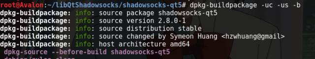 root@Avalon:~/libQtShadowsocks/shadowsocks-qt5#dpkg-buildpackage -uc -us –b