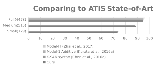 在本文中,我们在广泛用于LU的ATIS数据集进行了实验。为了在ATIS之外的新域上测试我们的模型,我们还在斯坦福对话数据集上做了一个新的有LU标注数据集。为了模拟数据不足的情况,我们按照Cheng等人的划分,将ATIS训练数据划分为大中小三种数据子集(Chen et al. 2016a)。