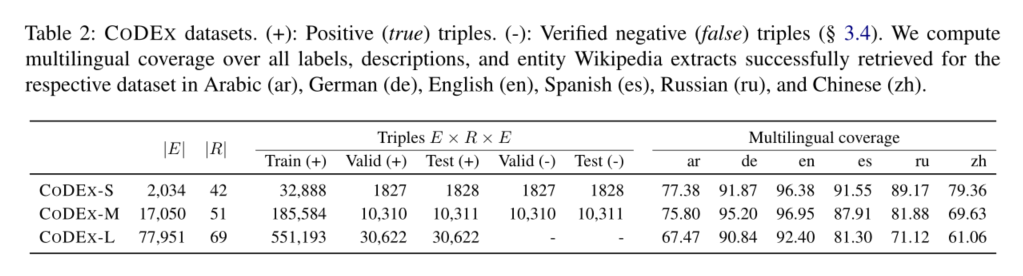 1. CODEX: A Comprehensive Knowledge Graph Completion Benchmark