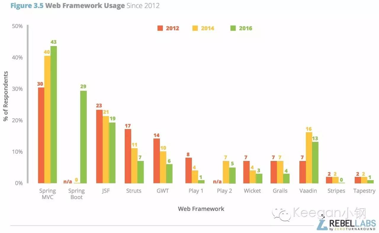 Spring依然主宰着Web框架市场,而且,Spring Boot剧增,不用它还用谁呢。