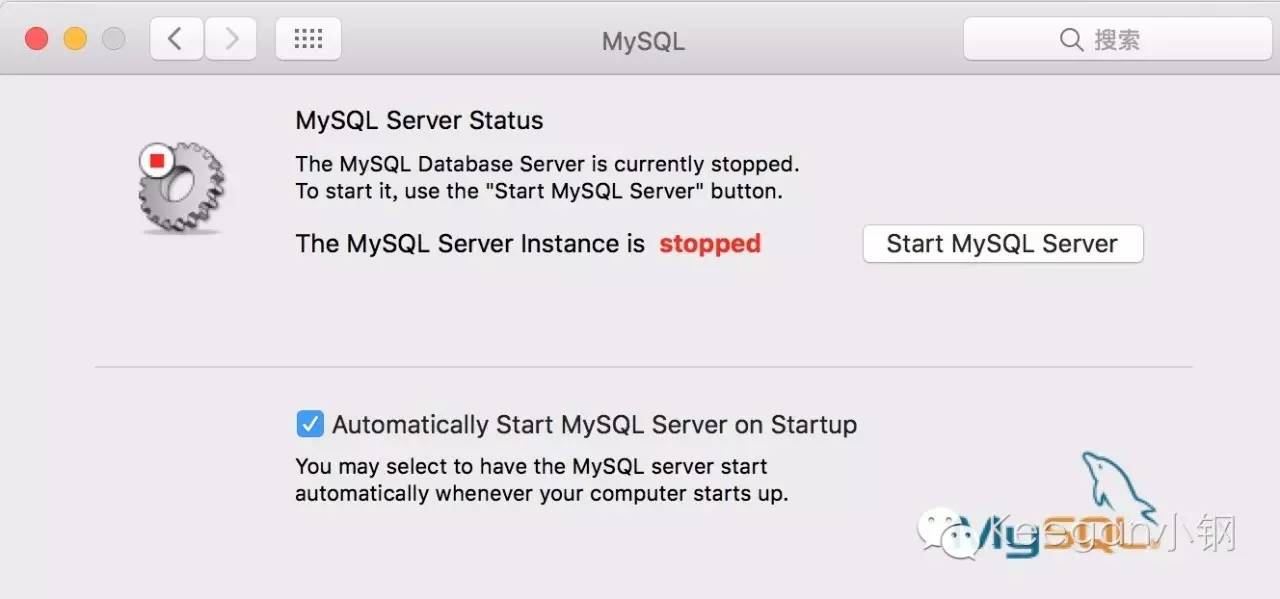 因为我是Mac环境,再补充下Mac环境下如何启动MySQL,以及MySQL安装后所存放的位置。MySQL安装完之后,在系统偏好设置里,就会多出一项MySQL的设置,打开后就会出现如下界面: