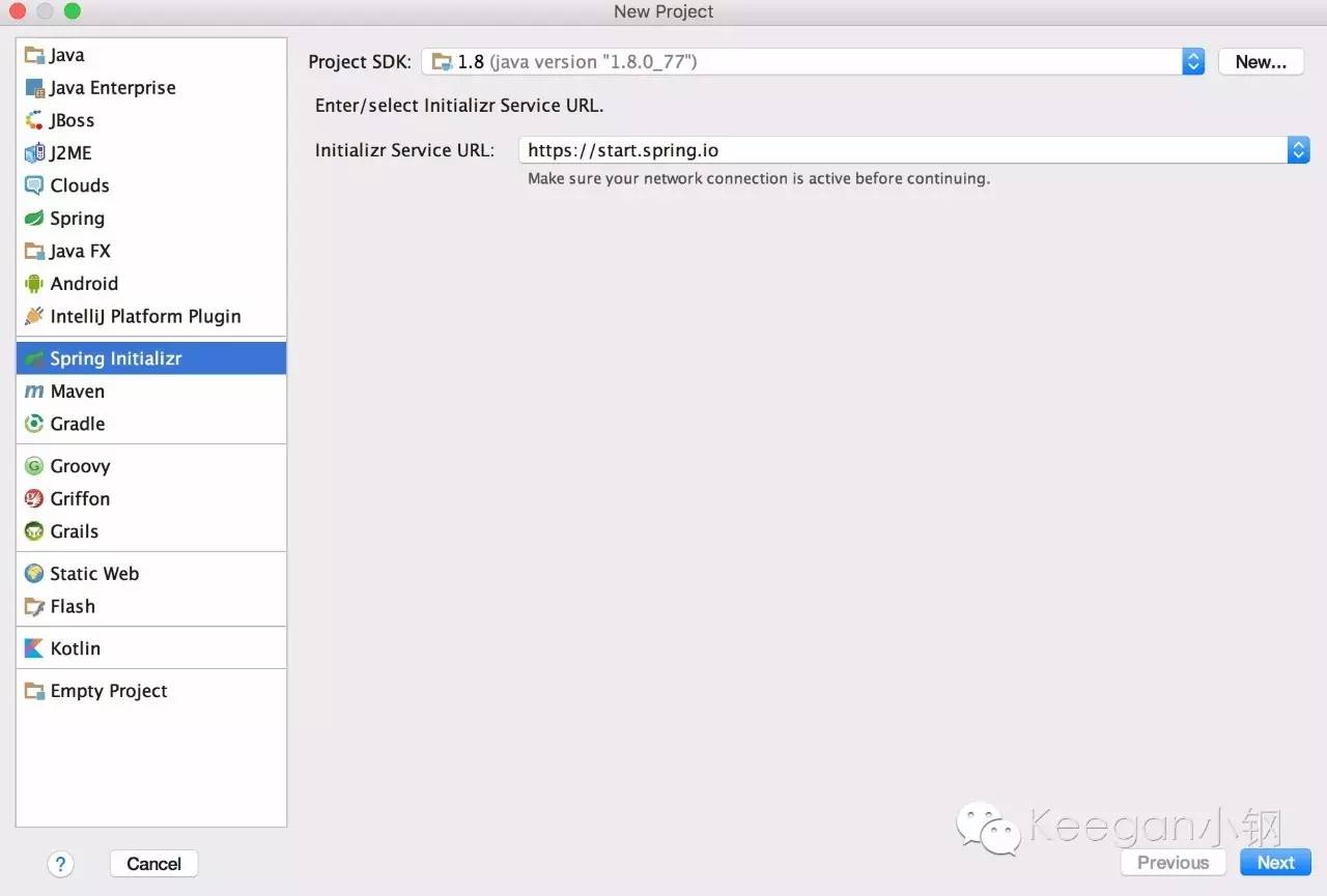 打开IDEA,新建一个项目,左侧菜单选择 Spring Initializr,如下图: