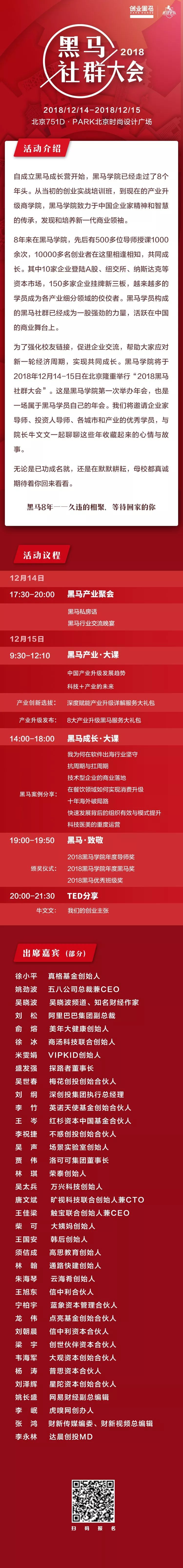 12月15日,黑马学院建院8周年庆祝活动——“2018黑马社群大会”将在北京举行。我们诚挚地欢迎导师和同学们返校重聚,共述创业主张,迎接“黄金时代”。