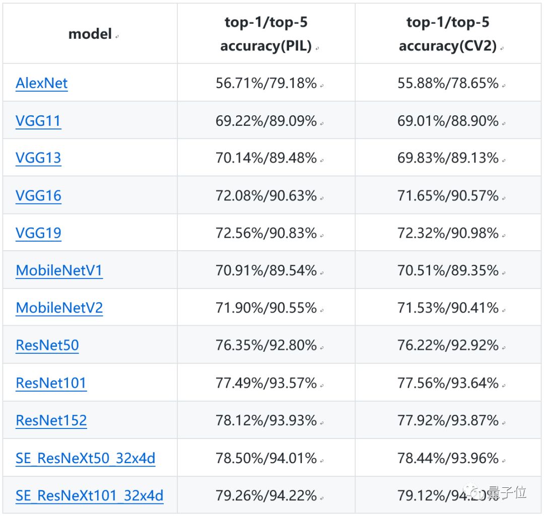 得益于深度学习的推动,图像分类的准确率大幅度提升。在经典的数据集ImageNet上,训练图像分类任务常用的模型,包括AlexNet、VGG、GoogLeNet、ResNet、Inception-v4、MobileNet、MobileNetV2、DPN(Dual Path Network)、SE-ResNeXt、ShuffleNet等。