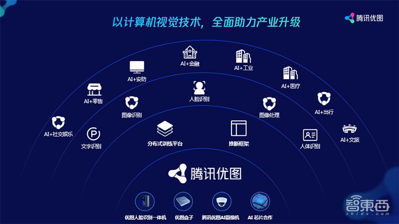 优图实验室以产品为核心,以AI技术落地为导向。通过腾讯云及“腾讯优图开放平台”对外输出团队核心的技术能力,建立AI云生态,带动行业的智能化变革。