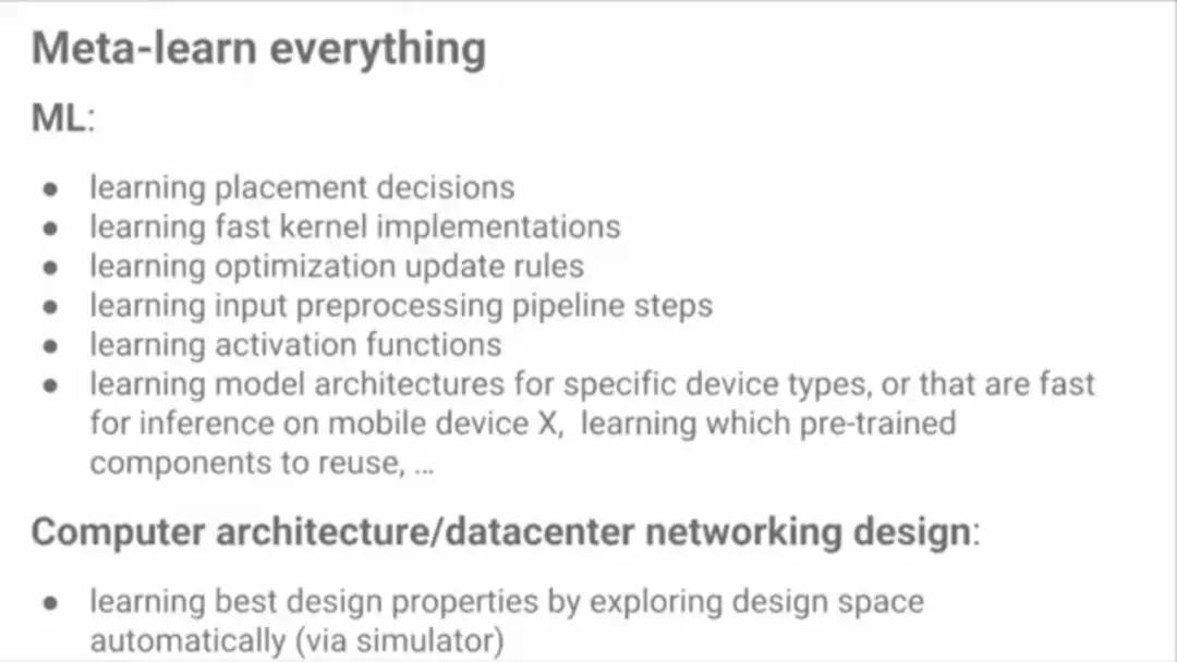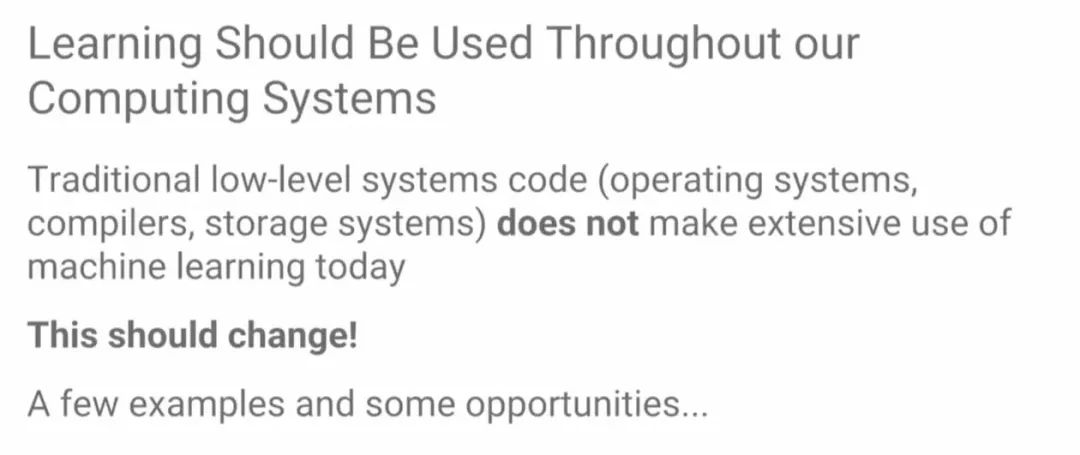 Jeff Dean说,这代表了一个非常有前景且十分有趣的方向,传统系统开发中,使用ML的视角,就能发现很多新的应用。