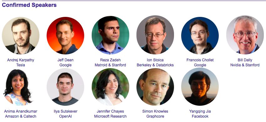 ScaledML大会的组织/发起人之一是斯坦福大学兼职教授、深度学习和计算机视觉初创公司Matroid联合创始人Reza Zadeh。ScaledML 2018的嘉宾阵容大牛如云,除了组织人Reza Zadeh: