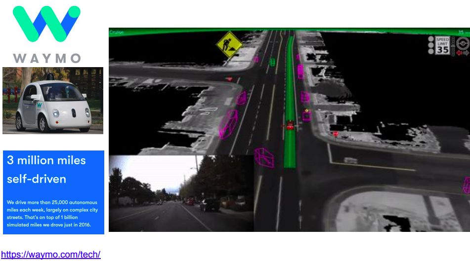 在城市基础设施问题中,Jeff Dean以谷歌Waymo自动驾驶为例:自动驾驶涉及到大量的数据、Waymo每周都会行驶2.5万英里,大部分是在复杂的城市道路上,在2016年,在模拟器上产生的数据量是10亿英里。因此,需要用到深度学习。
