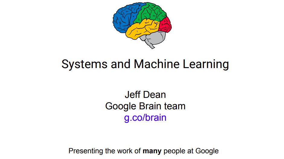 在System for ML这节,Jeff Dean谈了机器学习如何直接影响系统。现在,很多系统实际上都没有用到机器学习,但这一点应该得到转变。一个很好的例子就是高性能机器学习模型,这也是谷歌大脑最近在从事的一个研究重点。