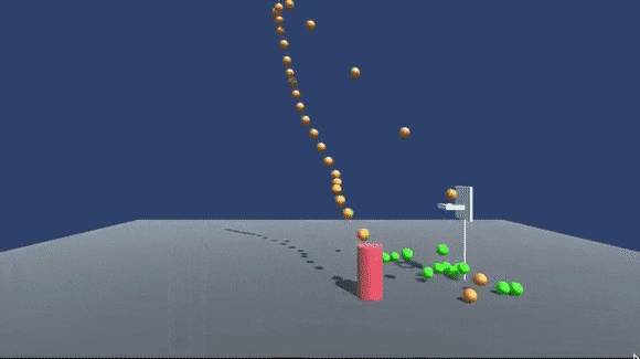 利用上面已经完成的系统,我们在模型上创建了一写变体,在训练500次时,模拟篮球的运行轨迹是这样的: