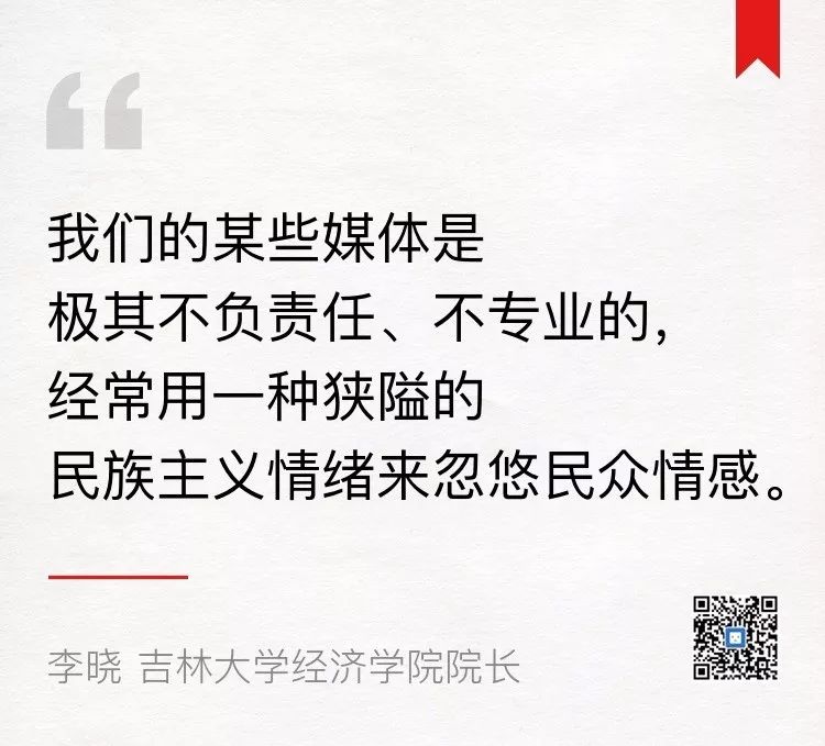 说到这里,必须指出的是,我们的某些媒体是极其不负责任、不专业的,经常用一种狭隘的民族主义情绪来忽悠民众情感。