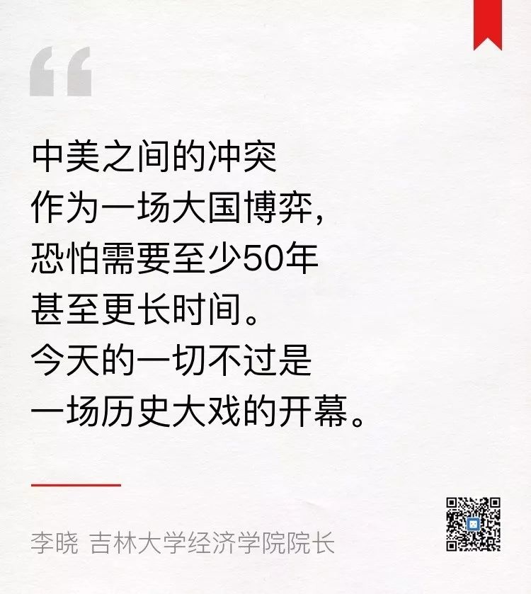 中美之间的冲突作为一场大国博弈,恐怕需要至少50年甚至更长时间。今天的一切,不过是一场历史大戏的开幕。