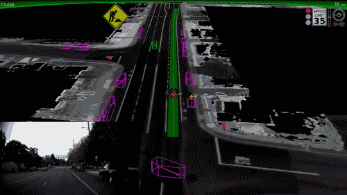 Google无人车外部实景和计算机实时生成的外部环境对比