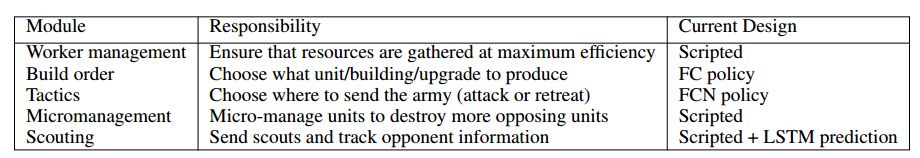 该部分还包括了策略、侦察、微管理、劳工管理、策划者模块,详情请参见原论文。