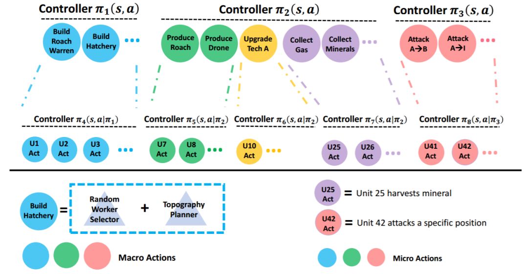 结合分层强化学习、自动生成宏动作和课程学习的架构。论文地址:https://arxiv.org/abs/1809.09095
