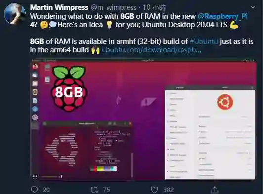 不过在最近的这次更新中,开发团队表示,他们在合作伙伴美光的帮助下克服了这个障碍,带来了 8GB 的树莓派 4,售价 75 美元。