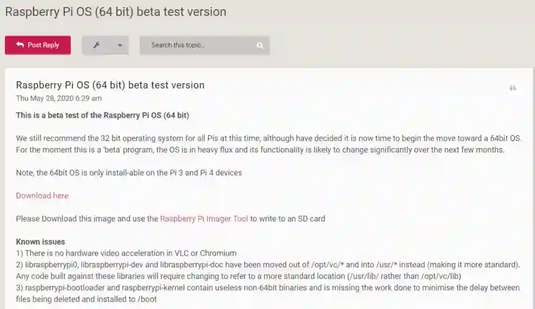 在软件方面,树莓派今天发布了 64 位镜像操作系统的 beta 版本。新系统包含与常规 32 位镜像相同的一组应用程序和桌面环境,但构建时使用的是 Debian arm64 端口。