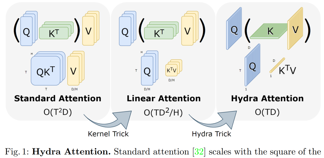 摘要:近日, Meta AI 和佐治亚理工学院的研究者提出了 Hydra Attention。该方法源于线性注意力中有些自相矛盾的行为,即在使用标准多头自注意力时,向模型中添加更多的 head 会保持计算量不变。但是,在线性注意力中改变操作顺序后,添加更多的 head 实际上降低了层的计算成本。 因此,研究者将这一观察结果发挥到了极致,将模型中 head 的数量设置为与特征数相同,从而创建了一个在计算上对于 token 和特征都呈线性的注意力模块。 下图为标准注意力、线性注意力和 Hydra Attention 的结构比较。 Hydra Attention 不仅比先前高效注意力工作的泛化性更强,而且在使用正确的内核时能够显著提升准确率。 推荐:将 head 数设置为特征数,Meta AI 多头高效注意力模块更准、更快。 论文 5:Frozen CLIP Models are Efficient Video Learners