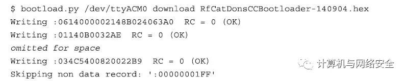 下一步,使用bootload.py脚本程序刷新RfCat的固件。