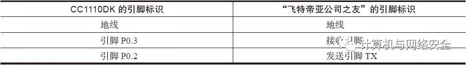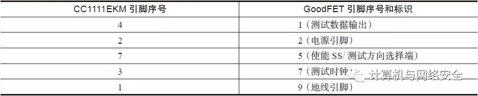 表6 CC1111EMK工具与GoodFET工具的连线对照表