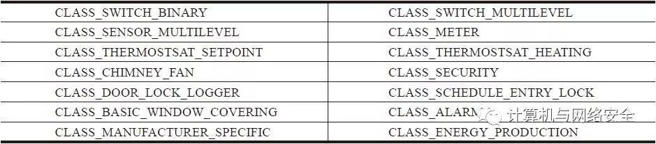 表4 Z-Wave规范中“命令分类”的一些实例