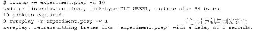 Zwreplay工具接受将一个libpcap数据包捕获文件作为输入参数,然后Zwreplay工具会重新发送数据包中的每一个数据类数据包中的有效载荷内容。这种技术在Z-Wave网络中主要用于实验,或是实验随后的数据包捕获能力,或是作为一个自动重复发起攻击状态的机制。